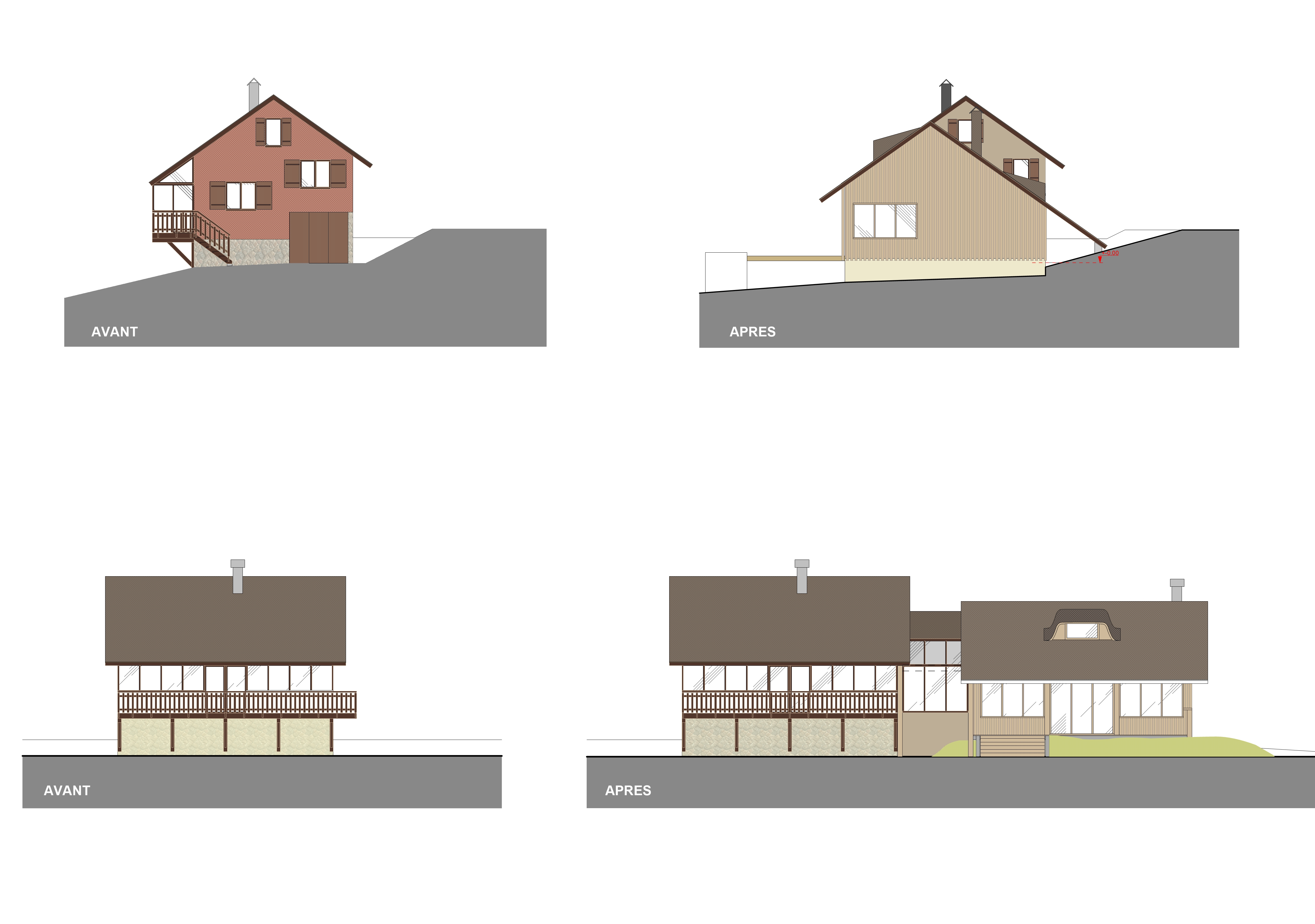 Il consiste en une extension bois du chalet existant. Le volume existant est simple avec une véranda plein sud ; le volume créé reste dans la même continuité avec un espace largement vitré au sud. La liaison entre volume existant et volume créé se fait par un entre deux plus bas avec toiture vitrée en partie scindant la construction en 2 entités distinctes. Les matériaux utilisés sont bardage bois, menuiseries bois et l'ardoise en toiture.