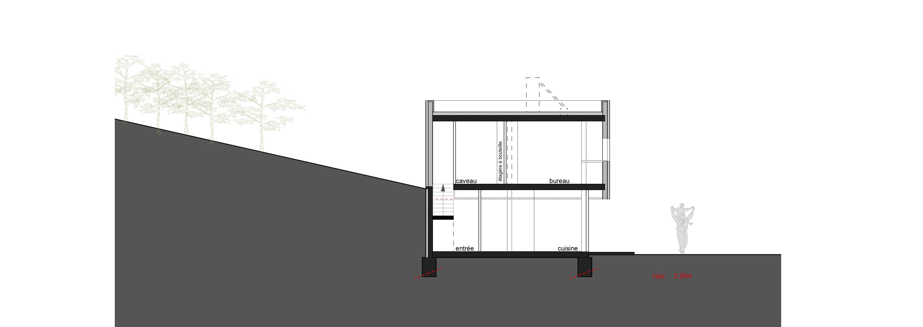 Une maison dans les vignes avec son chai de dégustation et sa terrasse contemplant le domaine